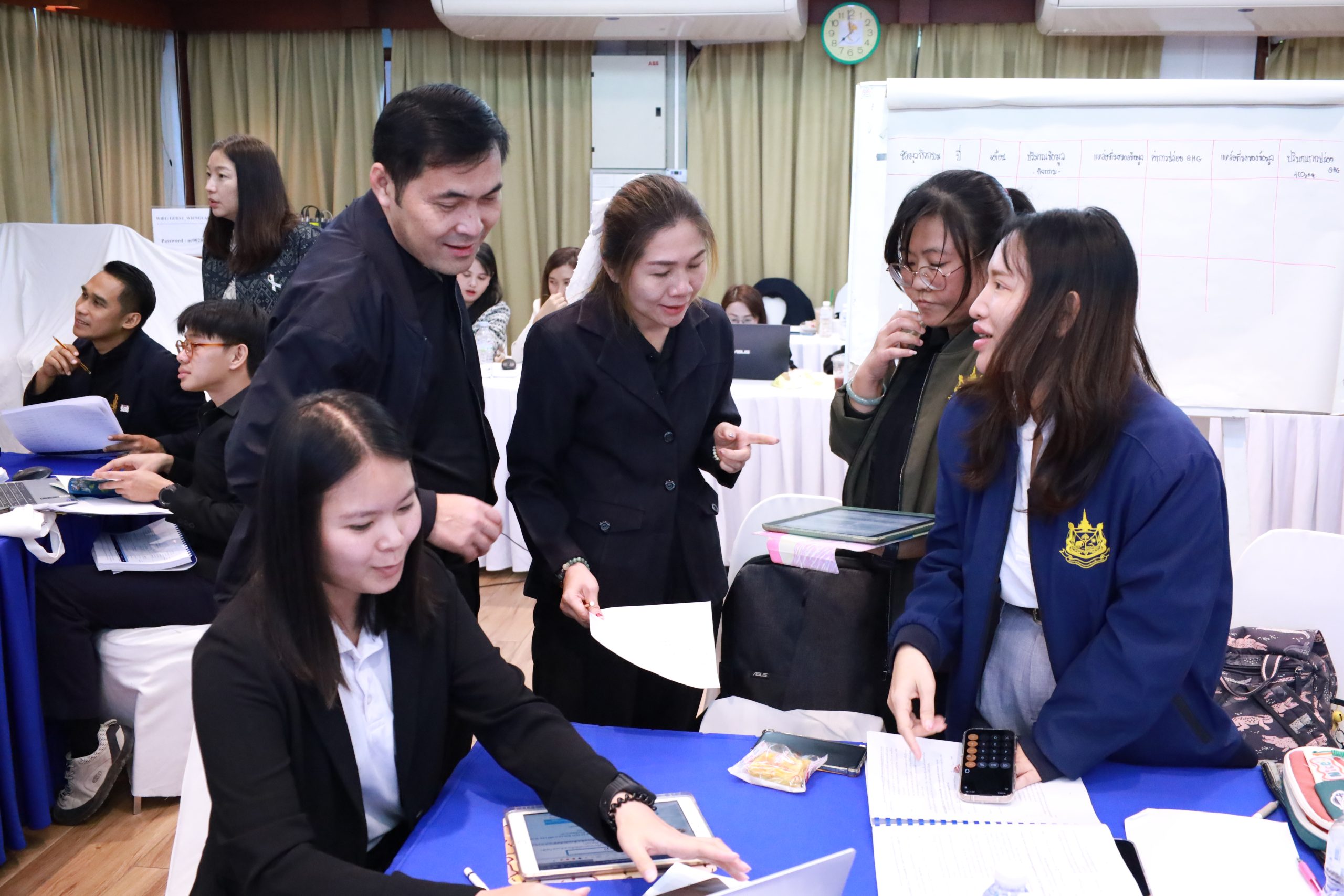 ภายใต้โครงการขับเคลื่อนการพัฒนาเมืองสู่เป้าหมายการปล่อยก๊าซเรือนกระจกสุทธิเป็นศูนย์ (Net Zero GHG Emission) ซึ่งได้รับการสนับสนุนงบประมาณจากกองทุนสิ่งแวดล้อม สำนักงานนโยบายและแผนทรัพยากรธรรมชาติและสิ่งแวดล้อม (สผ.) ได้รับเกียรติจากผู้แทนกองบริหารกองทุนสิ่งแวดล้อม สผ.ให้การแนะนำแนวทางการสนับสนุนเงินกองทุนสิ่งแวดล้อม ทั้งนี้มีผู้แทนทสจ. ภาคเหนือ จำนวน 12 ทสจ. เข้าร่วมการอบรมฯ ณ ห้องกาสะลอง โรงแรมเวียงลคอร จ.ลําปาง ภายใต้การอบรมในครั้งนี้ มีการนำเสนอเล่มคู่มือฯ และแนวทางการติดตามผลการลดก๊าซเรือนกระจก และแนวทางการสนับสนุนเงินกองทุนสิ่งแวดล้อม ร่วมถึงการฝึกปฏิบัติการคำนวณการปล่อยก๊าซเรือนกระจก และการกำหนดมาตรการ การติดตามผลการลดก๊าซเรือนกระจก ของทสจ. เพื่อให้เกิดความรู้ความเข้าใจ การสื่อสารที่ถูกต้อง สำหรับการจัดทำข้อมูลก๊าซเรือนกระจกระดับเมืองและจังหวัดในอนคต ตลอดจนการให้ความเห็นและข้อเสนอแนะต่อคู่มือฯ และแนวทางฯ โดยทสจ. ที่เกี่ยวข้อง