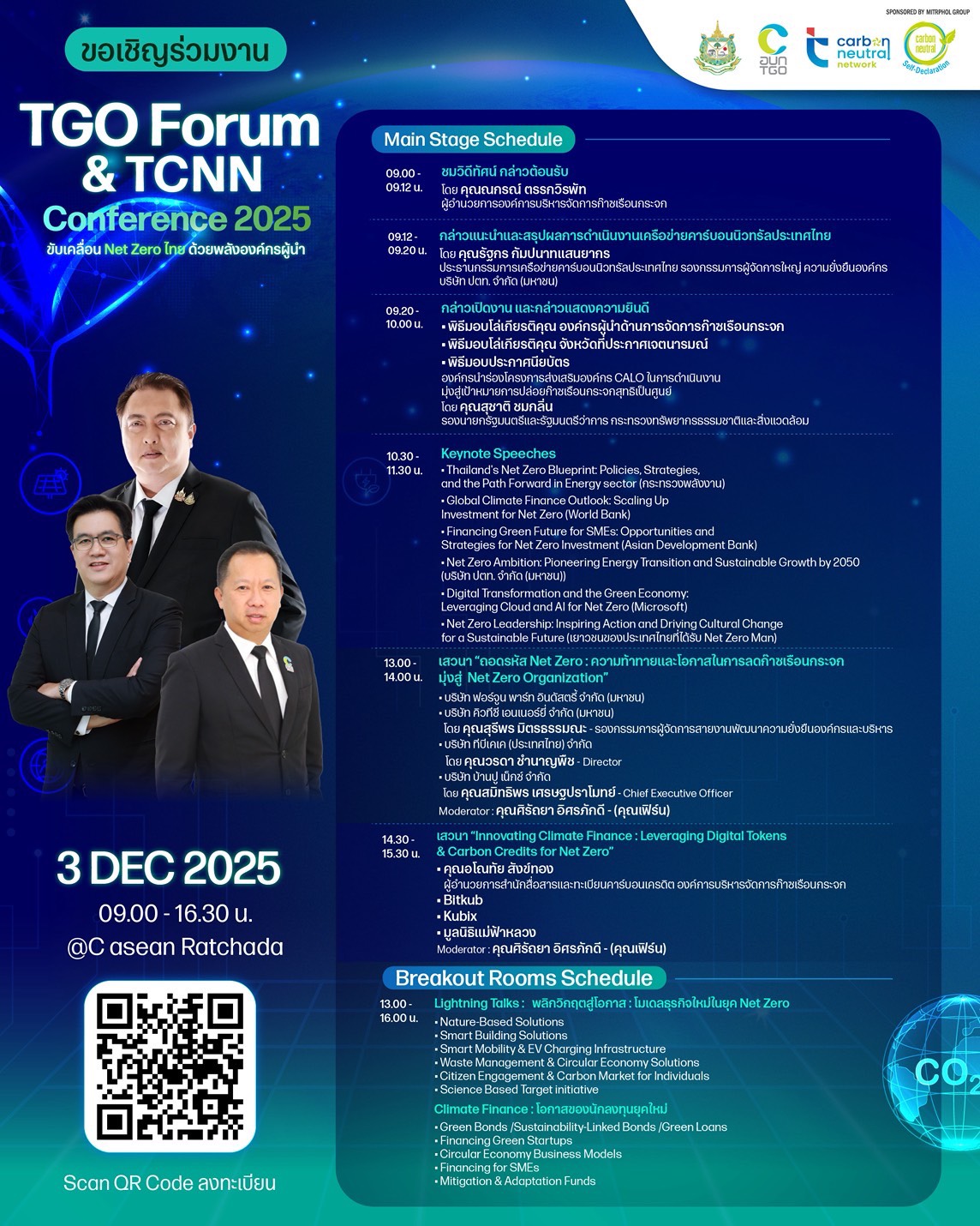 ขอเชิญเข้าร่วมงาน TGO Forum & TCNN Conference 2025: ขับเคลื่อน Net Zero ไทย ด้วยพลังองค์กรผู้นำ ประจำปี 2568