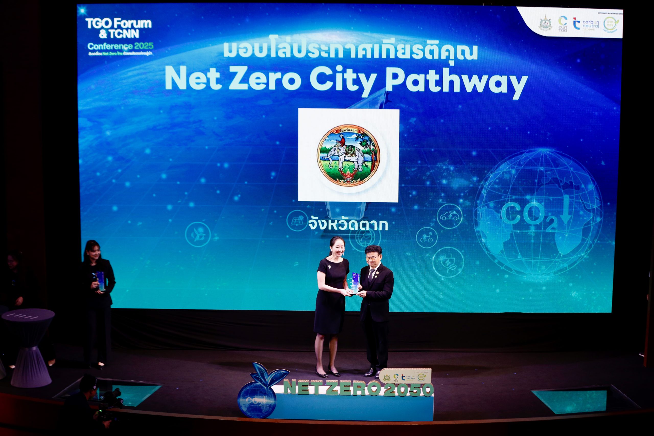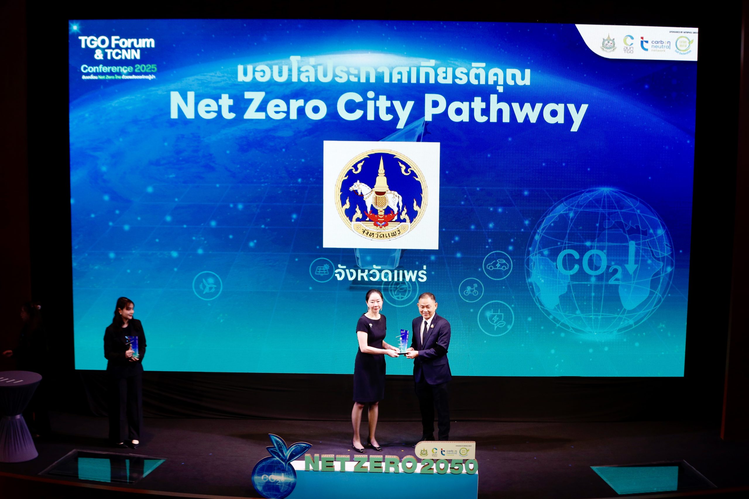 ทั้งนี้ ดร.ชญานันท์ ภักดีจิตต์ ปลัดกระทรวงทรัพยากรธรรมชาติและสิ่งแวดล้อม มอบโล่เกียรติคุณ Net Zero City Pathway ให้แก่จังหวัดที่ประกาศเจตนารมณ์ เป็นจังหวัด Net Zero ภายใต้โครงการขับเคลื่อนการพัฒนาเมืองสู่เป้าหมายการปล่อยก๊าซเรือนกระจกสุทธิเป็นศูนย์ (Net Zero GHG Emission) ซึ่งได้รับเงินสนับสนุนจากกองทุนสิ่งแวดล้อม สำนักงานนโยบายและแผนทรัพยากรธรรมชาติและสิ่งแวดล้อม จำนวน 16 จังหวัด ได้แก่ เพชรบุรี เลย ตาก ศรีสะเกษ ชลบุรี กระบี่ กำแพงเพชร ปราจีนบุรี พะเยา พังงา ราชบุรี สุราษฎร์ธานี แพร่ แม่ฮ่องสอน น่าน เพชรบูรณ์